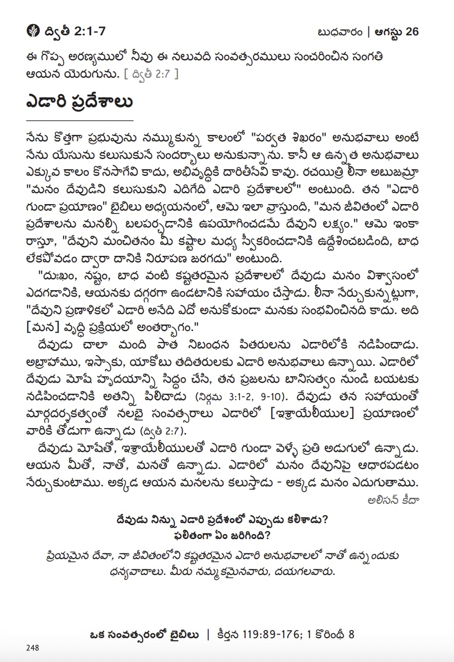 Our Daily Bread 2026 – Telugu Annual Edition is a powerful yearly devotional designed to help believers grow in faith every single day. Each day’s reading includes a Bible verse, meaningful devotional meditation, practical life application, and a closing prayer point.