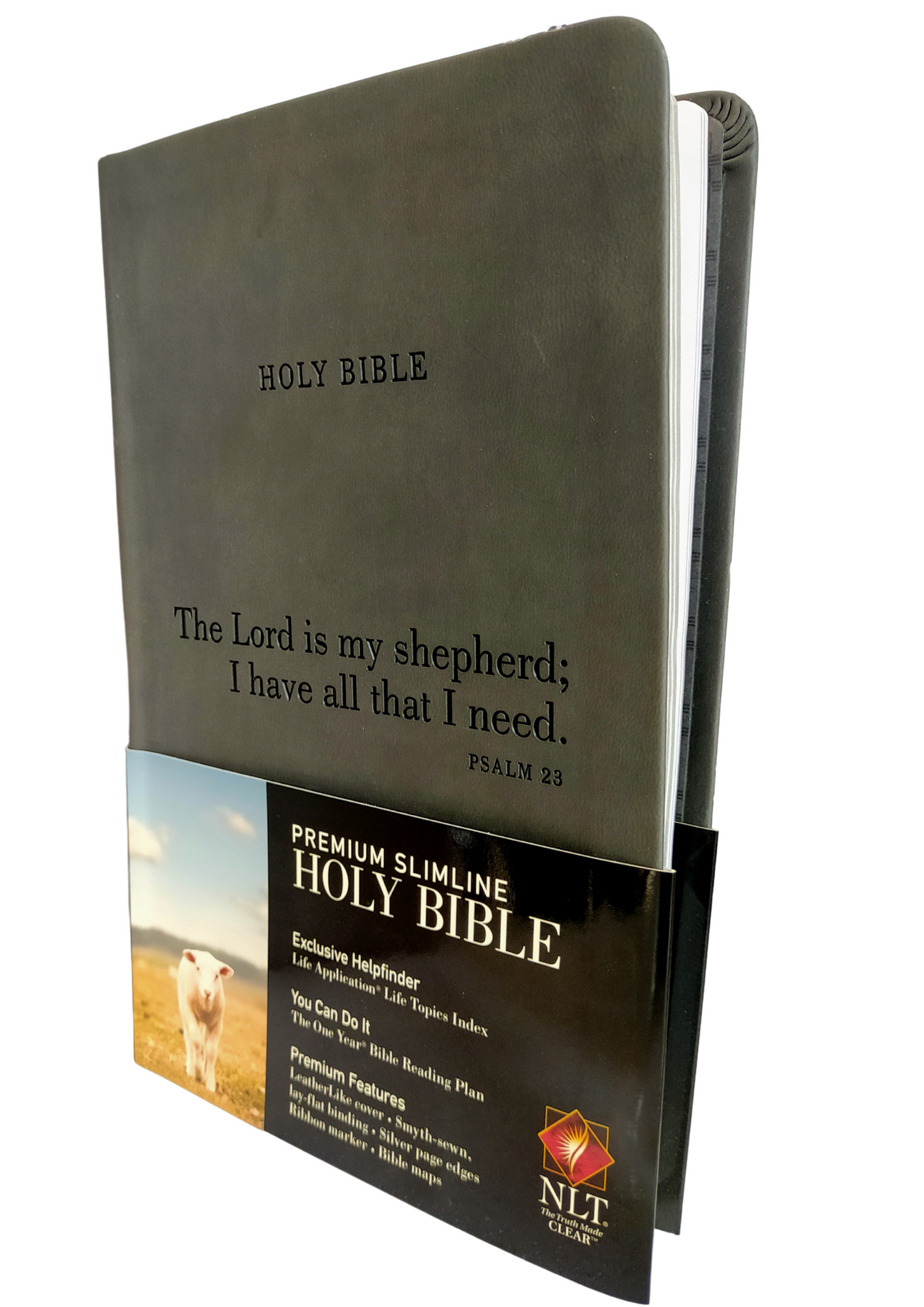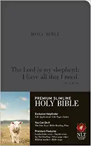 The Premium Slimline Holy Bible is an authoritative Bible translation, rendered faithfully into today's English from the ancient texts by 90 leading bible scholars. The NLT's scholarship and clarity breathe life into even the most difficult-to-understand Bible passages. Features leather-like cover, smythe-sewn, lay-flat binding, silver page edges, ribbon marker and bible maps.